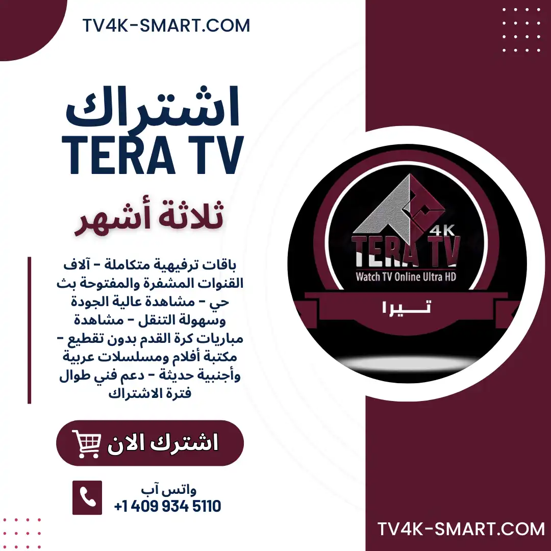 أفضل اشتراكات IPTV يقدمها متجر TV4K-SMART.COM، اكتشف عالمًا جديدًا من الترفيه بجودة 4K، حيث يجمع اشتراك TERA TV 4K بين الأداء الرائع والمحتوى المتنوع.